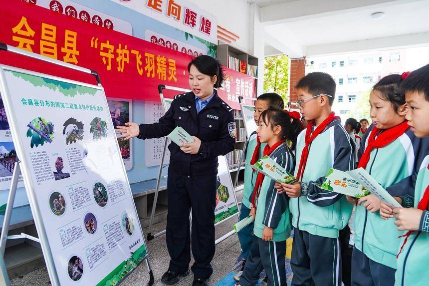 4月7日,江西省赣州市会昌县林业局联合县公安局工作人员来到会昌县希望小学,开展“守护飞羽精灵·共绘生态画卷”主题“爱鸟周”宣传活动。通过讲解爱鸟知识、为鸟儿安家、展示鸟类标本等多种方式,加深学生对野生鸟类的认识和了解,增强保护鸟类意识,养成爱鸟护鸟的良好习惯。(刘兆春摄影报道)